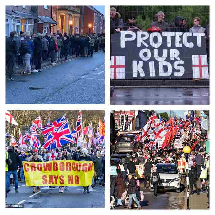 A thousand residents are marching in Crowborough against migrants being dumped in their area